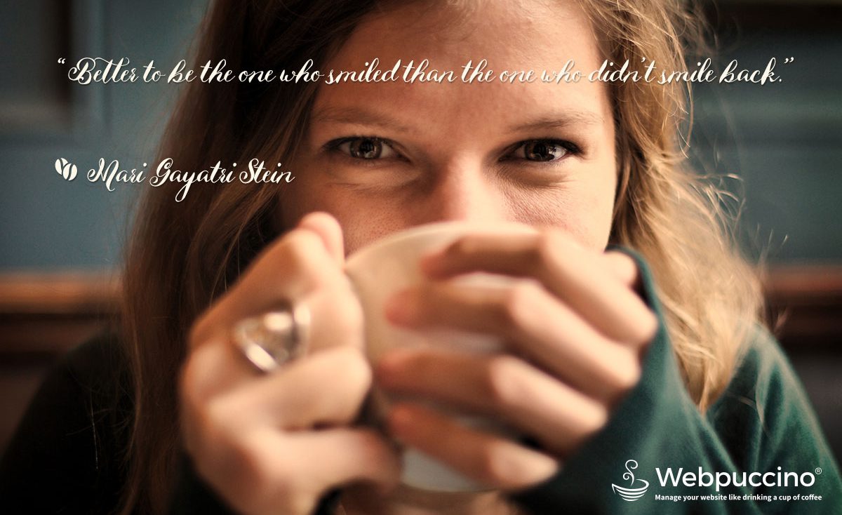 26 september 2016 | Coffee inspiration | Tags: Coffee, Inspiratie, Koffie, Mari Gayatri Stein, Quote Coffee Inspiration 43 “Better to be the one who smiled than the one who didn’t smile back.” ~ Mari Gayatri Stein