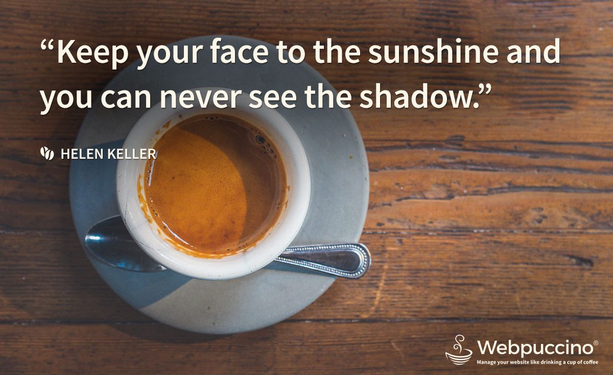 “Keep your face to the sunshine and you can never see the shadow.” ~ Helen Keller...